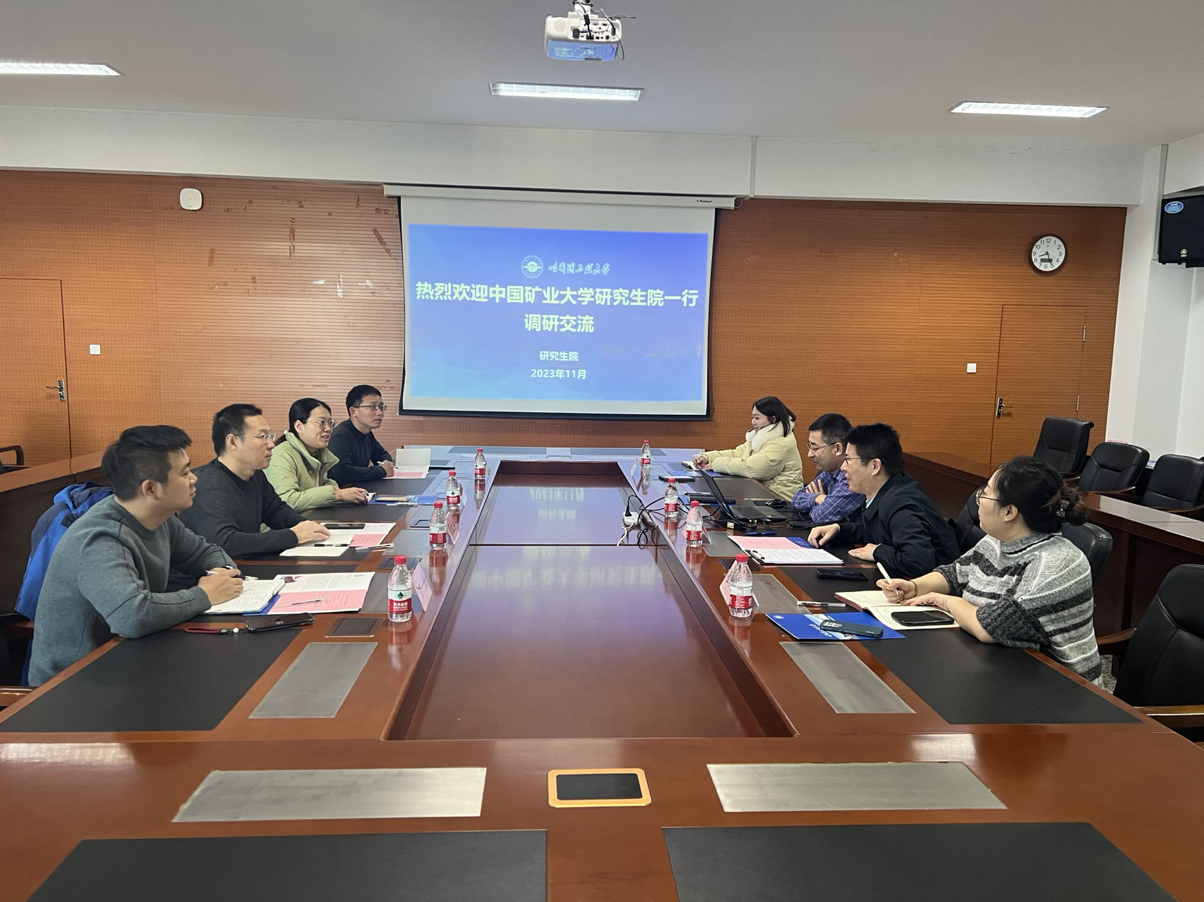 管红杰副院长介绍了中国矿业大学及研究生教育的基本情况,并对哈尔滨工程大学对本次调研工作的安排表示感谢。他简要介绍了本次调研的主要目的和中国矿业大学在卓越工程师培养和工程硕博士培养改革工作的情况。随后,双方围绕工程硕博士生源选拔、校企共建课程、导师遴选、项目制工程硕博士培养、学位论文质量保障等方面展开了深入讨论,希望后续在工作中互学互鉴,加强交流与合作。